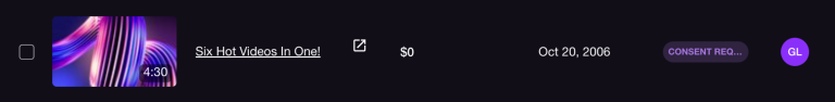 Nachdem die Altersverifizierung abgeschlossen ist, gelangen die Darsteller*innen auf eine Seite, auf der sie die Clips sehen, für die ihre Zustimmung zur Veröffentlichung auf C4S angefordert wird. Dort können sie sich die Clip-Vorschauen ansehen und die Anfrage entweder einzeln für jeden Clip oder gesammelt genehmigen.