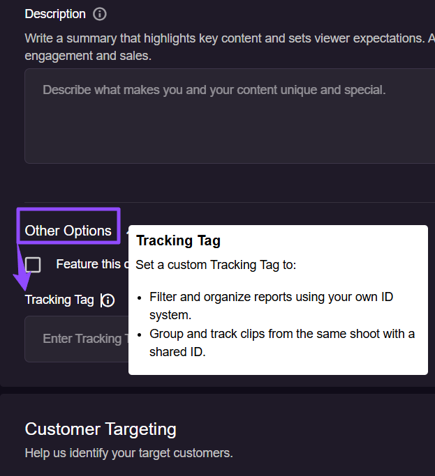 - Tracking-Tags sind nicht an einen einzelnen Shop gebunden – Derselbe Tag-Name kann von verschiedenen Creatorn in verschiedenen Shops verwendet werden.