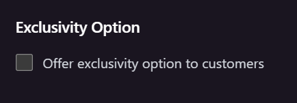 Note: Checking the box but leaving this field blank means exclusivity is not offered.