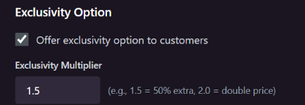 - If you enable exclusivity, you can specify a multiplier to increase the price.