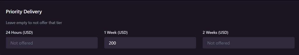 Priority Delivery - Customers can pay extra to receive their clip within a faster time frame. You can set the additional price for each available tier: