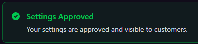 Once approved, the status will change to Settings Approved and the form will be visible to customers.